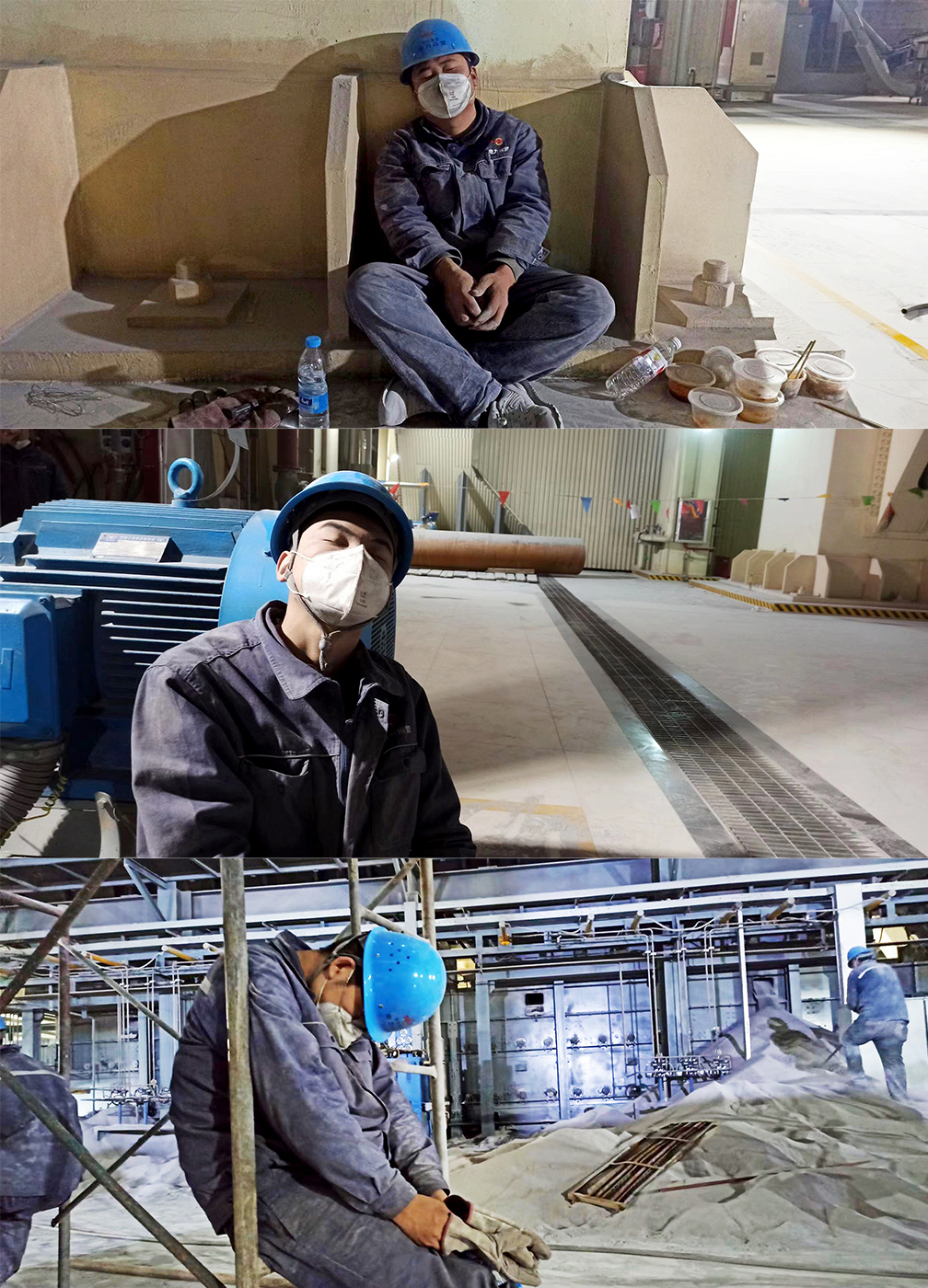 凌晨4:04,隨著灰渣量的減輕,電氣班檢查確認(rèn)控制回路完好,二級輸送帶啟動正常,除渣系統(tǒng)投入使用,避免了一次非計劃停爐,為項目部本次連續(xù)作戰(zhàn)畫上了一個圓滿的句號,而此時,疲憊不堪的搶修人員已經(jīng)在等候間歇就地睡著了……