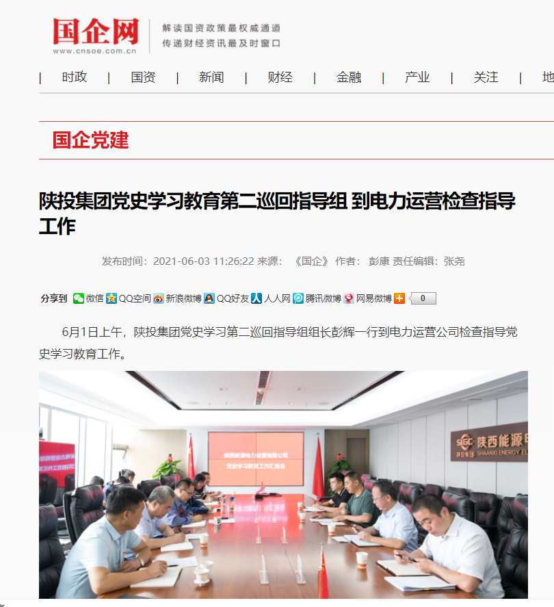 6月1日上午,陜投集團黨委黨史學習教育第二巡回指導組組長、集團機關(guān)黨委副書記彭輝一行到公司檢查指導黨史學習教育工作。