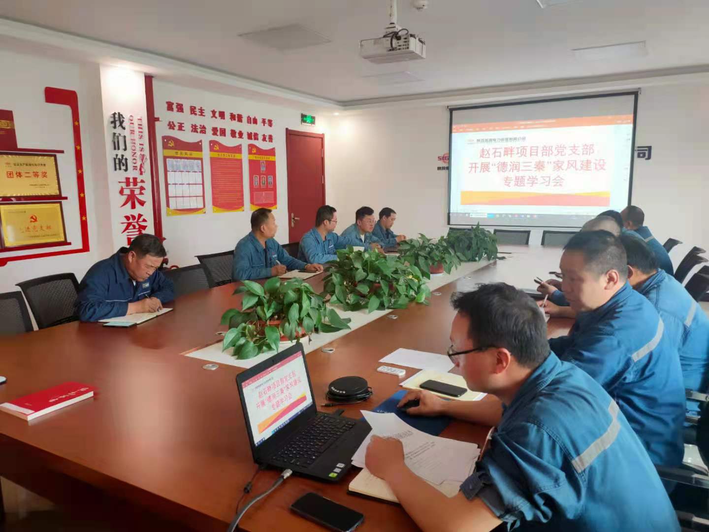 6月22日,趙石畔黨支部召集管理人員開展“德潤三秦”家風建設學習會。