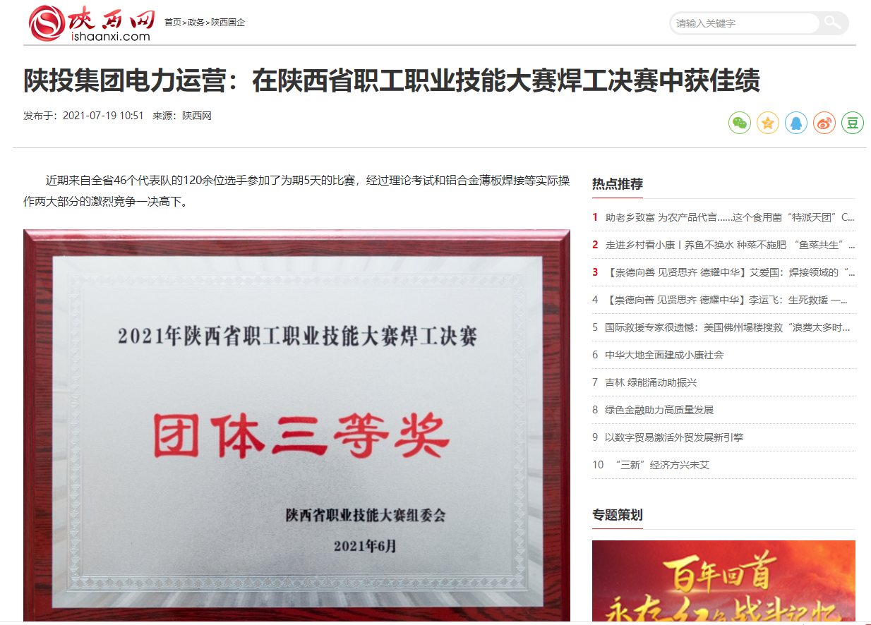 近日,由電力運(yùn)營(yíng)員工雷震、步阿朋和吉木薩爾發(fā)電員工潘奎組成的陜投集團(tuán)工會(huì)代表隊(duì)在“2021年陜西省職工職業(yè)技能大賽焊工決賽”榮獲團(tuán)體三等獎(jiǎng)的佳績(jī)。電力運(yùn)營(yíng)公司員工雷震、龔濤分別榮獲個(gè)人三等獎(jiǎng)及優(yōu)秀裁判員榮譽(yù)稱號(hào)。此次比賽是公司首次參加省級(jí)職業(yè)技能大賽焊工決賽。