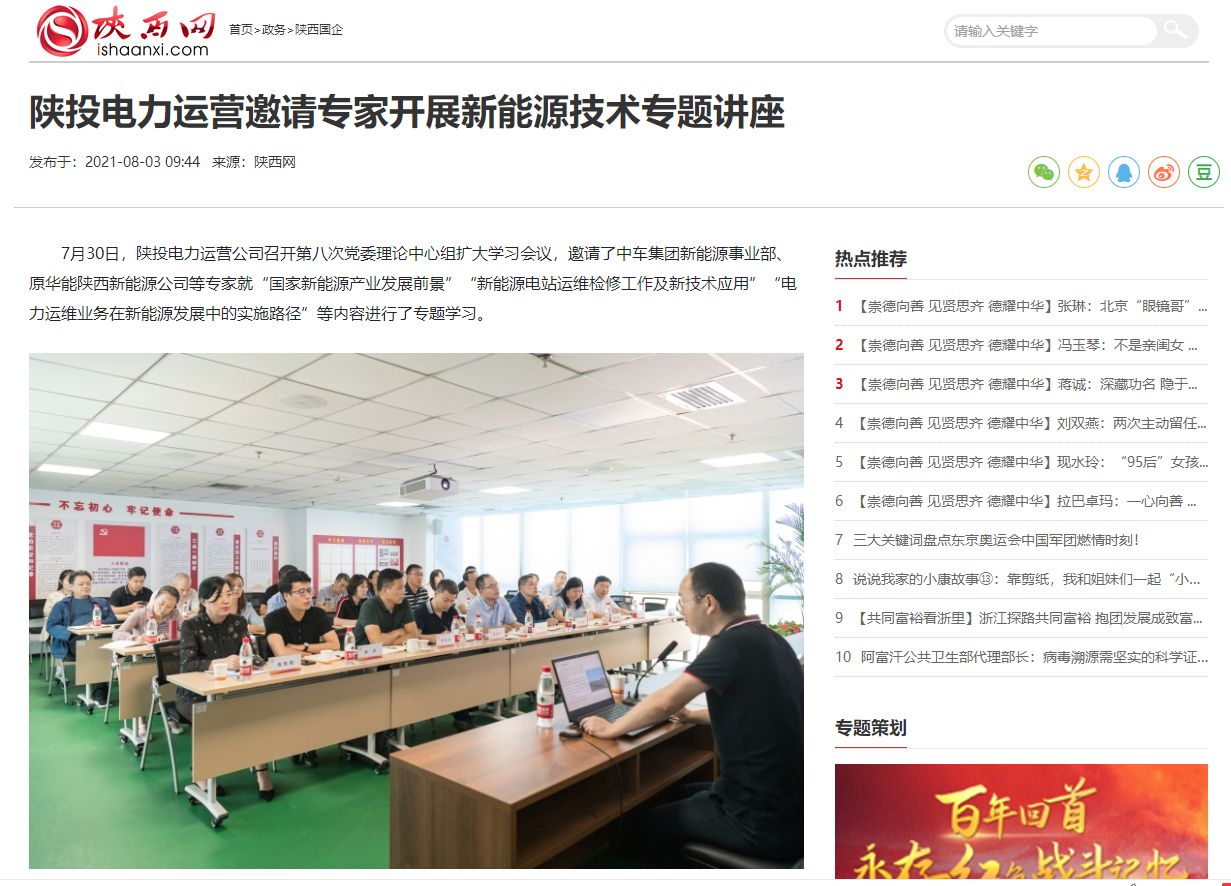 7月30日,公司召開(kāi)第八次黨委理論中心組擴(kuò)大學(xué)習(xí)會(huì)議,邀請(qǐng)了中車(chē)集團(tuán)新能源事業(yè)部、原華能陜西新能源公司等專(zhuān)家就“國(guó)家新能源產(chǎn)業(yè)發(fā)展前景”“新能源電站運(yùn)維檢修工作及新技術(shù)應(yīng)用”“電力運(yùn)維業(yè)務(wù)在新能源發(fā)展中的實(shí)施路徑”等內(nèi)容進(jìn)行了專(zhuān)題學(xué)習(xí)。