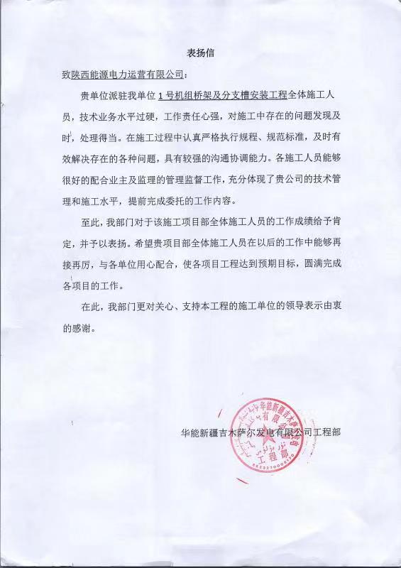 日前,公司分別收到渭河發(fā)電、吉木薩爾發(fā)電的感謝信、表揚(yáng)信。