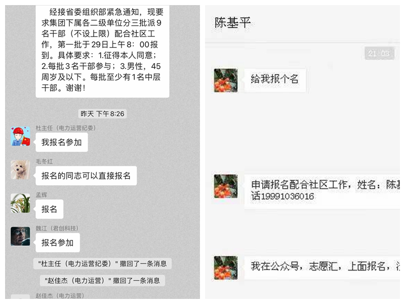 “我報名!”“算我一個!”“我在公眾號、志愿匯上面都報了名,一直沒有輪到我,現在我終于可以報名了!”“助力疫情防控是一份責任,我最近一直在小區(qū)當志愿者。”沒有猶豫、沒有遲疑,不到10分鐘,陳基平、魏江、高西林、王昌輝,曹林、薛華智、趙佳杰、王澤朋、柯輝、楊博、鮑志華等十數名干部職工主動請纓,申請前往社區(qū)一線支援。