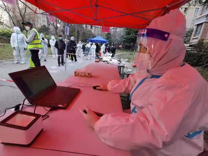 “疫情就是命令,防控就是號角。”12月29日一大早,公司志愿者迅速投入到疫情防控工作中。由于樣本采集過程存在風險,志愿者們層層防護,隔離服、N95口罩、一次性帽子、面屏等等全副武裝。據李楚淵介紹,為了節(jié)約防護物資,他們會盡量少喝水少如廁。每次爬樓梯時,防護面罩上會產生很多霧氣,只能勉強看到前面的路,脫下防護服時往往渾身汗?jié)瘛Kf:“之前都是在新聞里看到醫(yī)務人員辛苦,這次切實體會到他們的不易。我既然選擇了做志愿者,就要為戰(zhàn)勝疫情盡一份力。”