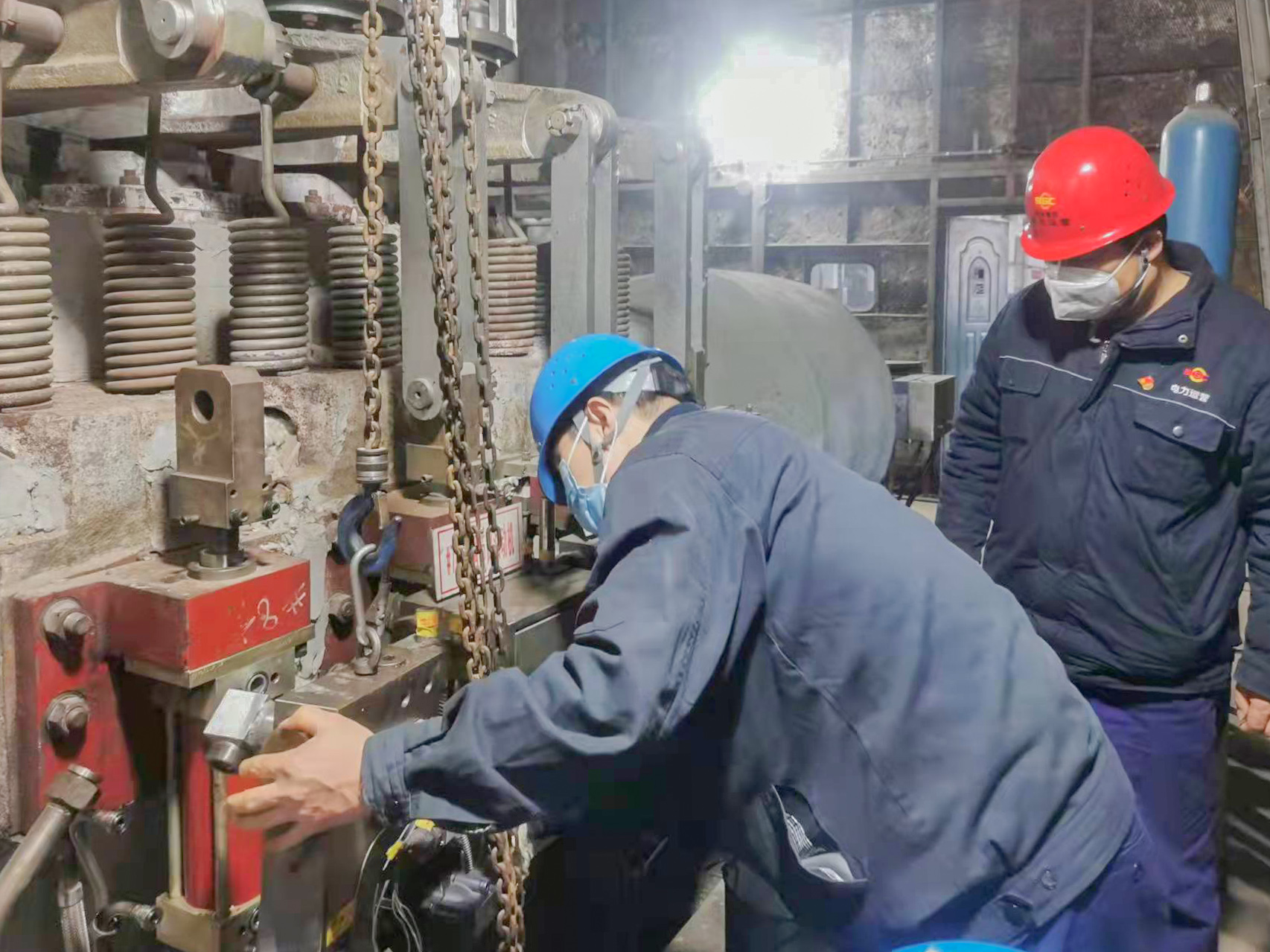 機(jī)務(wù)隊(duì)隊(duì)長王會(huì)勇就是眾多留守人員中的一個(gè)。疫情防控開始,他就一直吃住在生產(chǎn)現(xiàn)場。哪里有檢修任務(wù),哪里就有他的身影。“王隊(duì)長把生產(chǎn)現(xiàn)場當(dāng)成自己的家了!”是同事說他最多的話。他總是一笑,說:“設(shè)備就像我們的娃,只有我在現(xiàn)場,才安心啊!”輔機(jī)班58歲的老師傅敬新民家就在附近的楊家灣,他從疫情開始就一直留守生產(chǎn)現(xiàn)場,堅(jiān)決守好保電保熱“主戰(zhàn)場”。