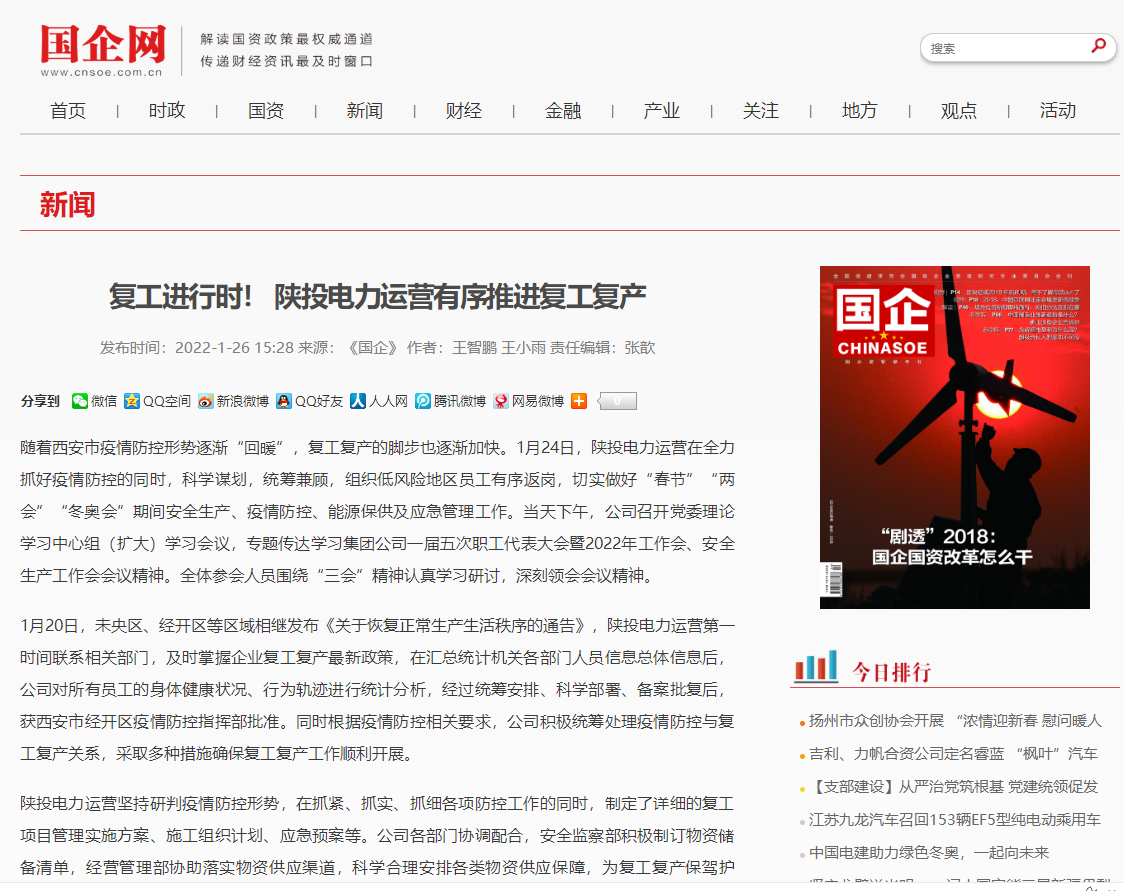 目前,電力運(yùn)營(yíng)各部門工作人員基本已到崗,正搶抓進(jìn)度,加快推進(jìn)公司生產(chǎn)、安全及經(jīng)營(yíng)等工作,努力將本次疫情對(duì)企業(yè)發(fā)展可能造成的沖擊和影響降至最低限度,確保各涉電企業(yè)機(jī)組設(shè)備長(zhǎng)周期安全可靠穩(wěn)定運(yùn)行。