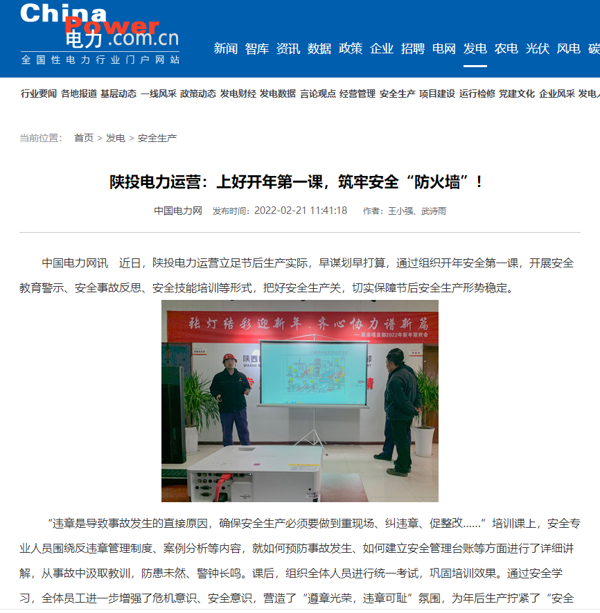 近日,陜投電力運營立足節(jié)后生產(chǎn)實際,早謀劃早打算,通過組織開年安全第一課,開展安全教育警示、安全事故反思、安全技能培訓等形式,把好安全生產(chǎn)關(guān),切實保障節(jié)后安全生產(chǎn)形勢穩(wěn)定。