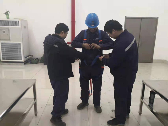 為提高基層職工的墜落防護應知應會安全知識及現場實操能力,吉木薩爾項目部組織各班組開展了正確使用安全帶的培訓活動。