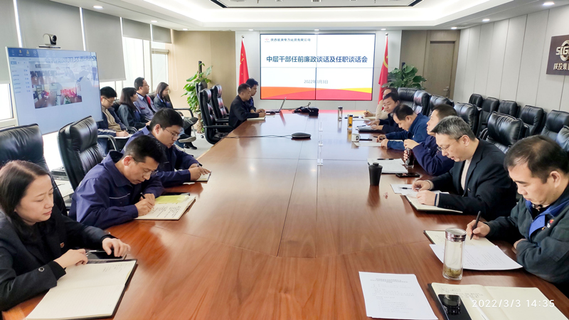 3月3日,公司召開中層干部任前集體廉政談話及任職談話會(huì)。黨委書記、董事長(zhǎng)毛冬紅,黨委副書記、總經(jīng)理張小鋒,紀(jì)委書記任廣軍及14名新任職中層干部參加會(huì)議。會(huì)議以視頻和現(xiàn)場(chǎng)相結(jié)合的方式召開,由人力資源部副主任魏鐸主持。