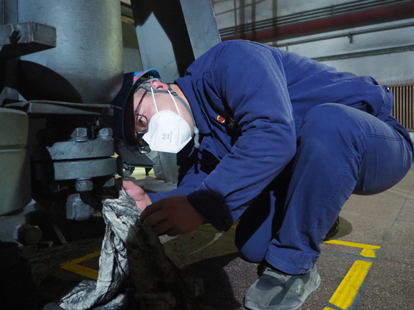 在檢修現(xiàn)場,各種管道“叢林”、大大小小的設備中,點綴著反光條的“運營熒光藍”隨處可見。各班組深入貫徹落實公司“質量提升年”要求,深化設備精細化管理,做到每個環(huán)節(jié)“回頭看”確保質量,班后做好工作面的現(xiàn)場清理確保整潔。