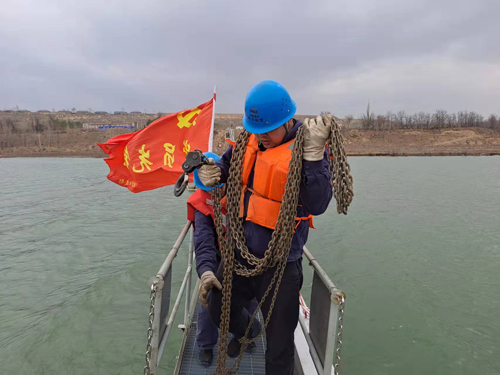 3月12日,趙石畔煤電水源地因瞬時大風及冰凌聚集沖擊取水管線浮箱及泵船,造成取水管線產生變形并發(fā)生位移,嚴重偏離原位20余米,給機組設備供水安全帶來巨大隱患。趙石畔項目部連夜組織人員、調配工器具到水源地進行搶修,經過不懈努力,于第二天臨時恢復供水。