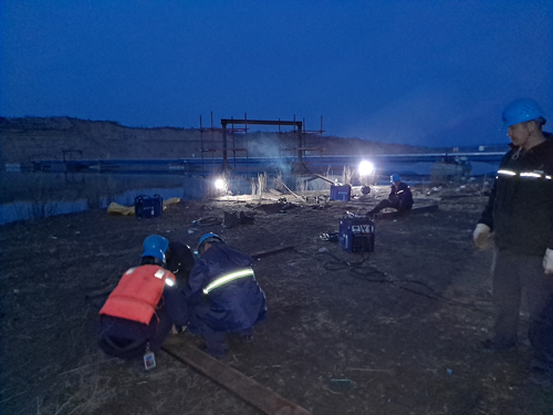 由于水源地區(qū)域缺乏大型水面起吊船只,沒有專業(yè)水下作業(yè)隊伍,陜北的室外幾乎每天都有5級以上的大風帶來漫天沙塵,搶修工作面臨著極大困難。水源地區(qū)域附近沒有休息場所,項目部人員主動放棄休息,風餐露宿,連續(xù)奮戰(zhàn),吃完盒飯就繼續(xù)投入到搶修工作中,大風、雨雪的惡劣天氣沒有阻擋他們的工作進程,強烈的紫外線將臉曬得一層層蛻皮,大家開玩笑互稱“紅孩兒”。