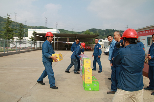 一份清涼,一份關懷。近日,商洛發(fā)電總工程師孫明、副總經理湯培英到公司商洛項目部慰問高溫下堅守生產一線的全體職工,對大家“戰(zhàn)高溫、斗酷暑、保安全、促生產”的奉獻精神給予高度贊揚,將防暑降溫飲品送到職工們手中,叮囑大家要注意防暑、保障自身安全健康,確保高溫季節(jié)安全生產工作平穩(wěn)有序開展。