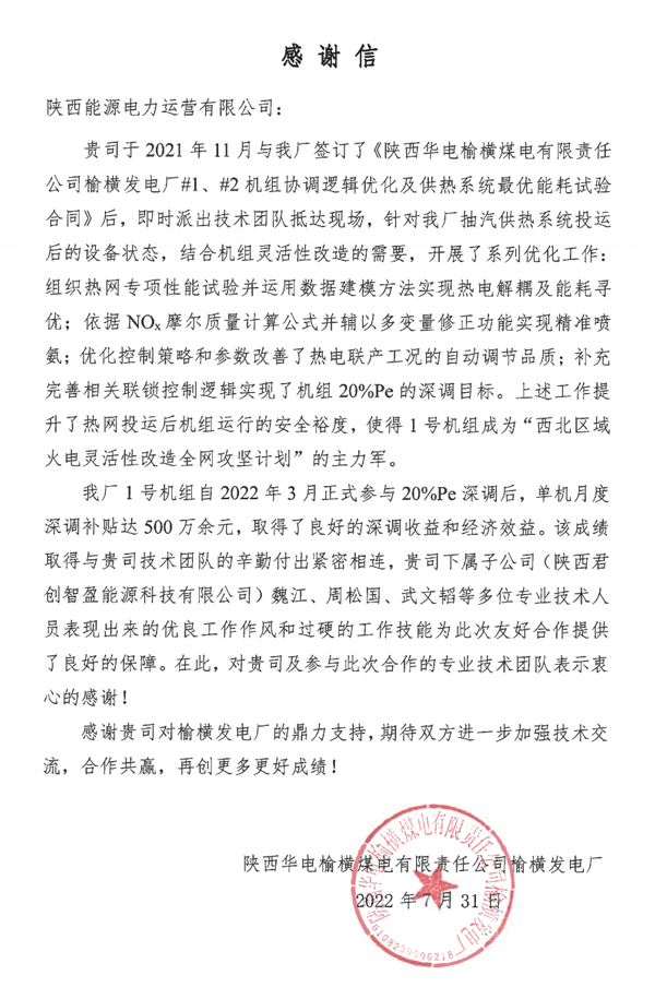 日前,君創(chuàng)科技順利完成華電集團(tuán)榆橫煤電公司#1、#2機(jī)組協(xié)調(diào)邏輯優(yōu)化及供熱系統(tǒng)最優(yōu)能耗試驗(yàn),使業(yè)主機(jī)組成為“西北區(qū)域火電靈活性改造全網(wǎng)攻堅(jiān)計(jì)劃”的主力軍。