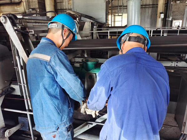 輸煤專業(yè)加強(qiáng)煤場(chǎng)設(shè)備巡檢,全力保證機(jī)組“口糧”。鋼結(jié)構(gòu)干煤棚內(nèi)、封閉煤場(chǎng)內(nèi)氣溫高達(dá)50攝氏度,落煤筒內(nèi)空間狹窄,輸煤班檢修人員細(xì)致檢查每塊襯板是否有嚴(yán)重磨損及起翹,保障機(jī)組正常供煤。每次外出巡檢,除了隨身攜帶維修工具,醫(yī)藥箱也是必備品,熱得實(shí)在受不了就喝點(diǎn)藿香正氣水。一天下來(lái),工作服都泛起了片片白色的汗?jié)n。“有時(shí)設(shè)備故障,在廠房一呆就是一天,這種滋味就像蒸桑拿,但是高溫天氣下只有細(xì)之又細(xì)、慎之又慎,才能保證設(shè)備安全。”電氣專業(yè)員工李彪說(shuō)道。他對(duì)這種“燒烤”體驗(yàn)早已習(xí)以為常。