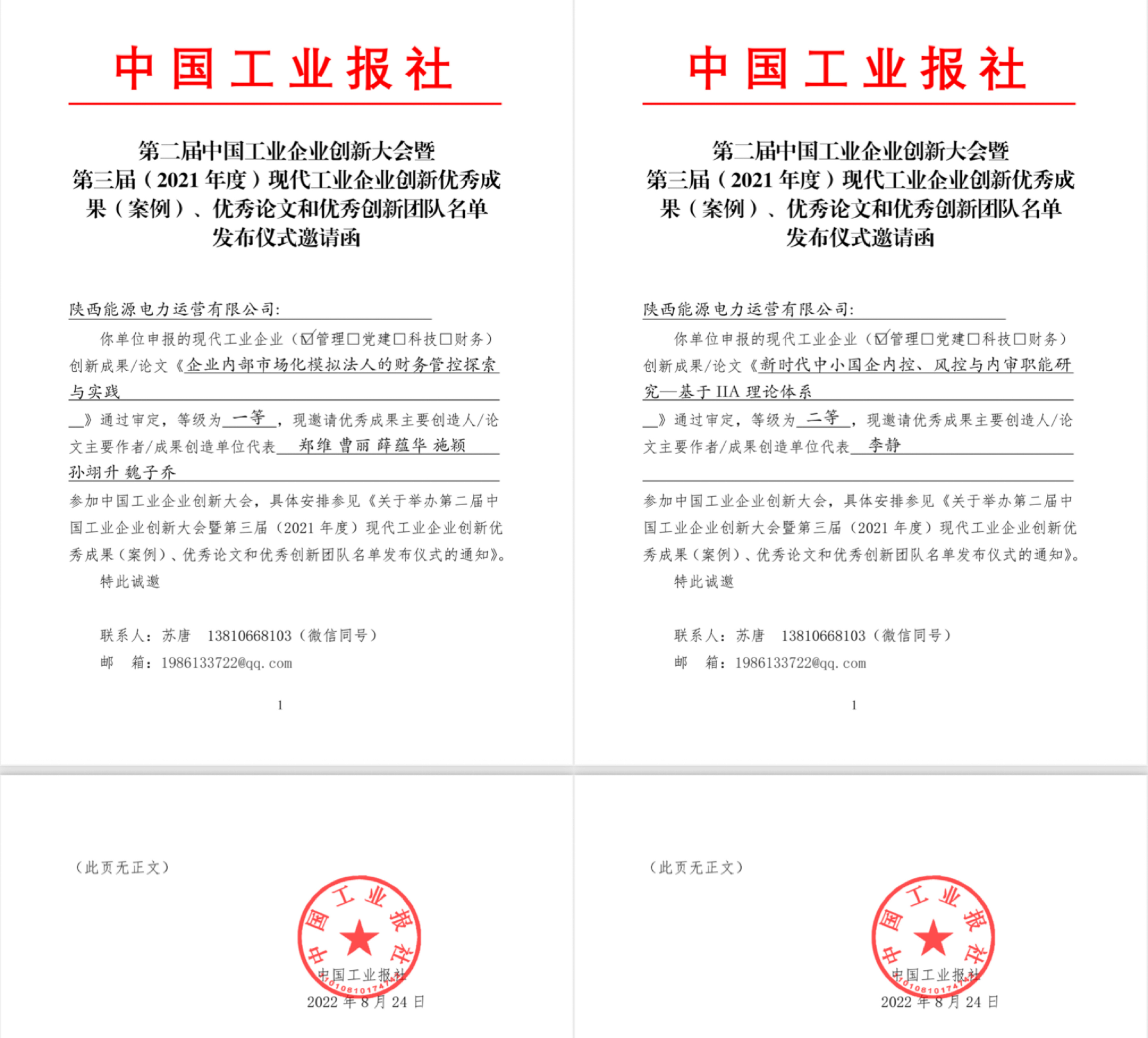 日前,公司《企業(yè)內(nèi)部市場(chǎng)化模擬法人的財(cái)務(wù)管控探索與實(shí)踐》《新時(shí)代中小國(guó)企內(nèi)控、內(nèi)控與內(nèi)審職能研究——基于IIA理論體系》兩篇學(xué)術(shù)論文分獲第二屆中國(guó)工業(yè)企業(yè)創(chuàng)新大會(huì)暨第三屆現(xiàn)代工業(yè)企業(yè)創(chuàng)新優(yōu)秀成果(案例)、優(yōu)秀論文和優(yōu)秀創(chuàng)新團(tuán)隊(duì)評(píng)比一等獎(jiǎng)、二等獎(jiǎng)。