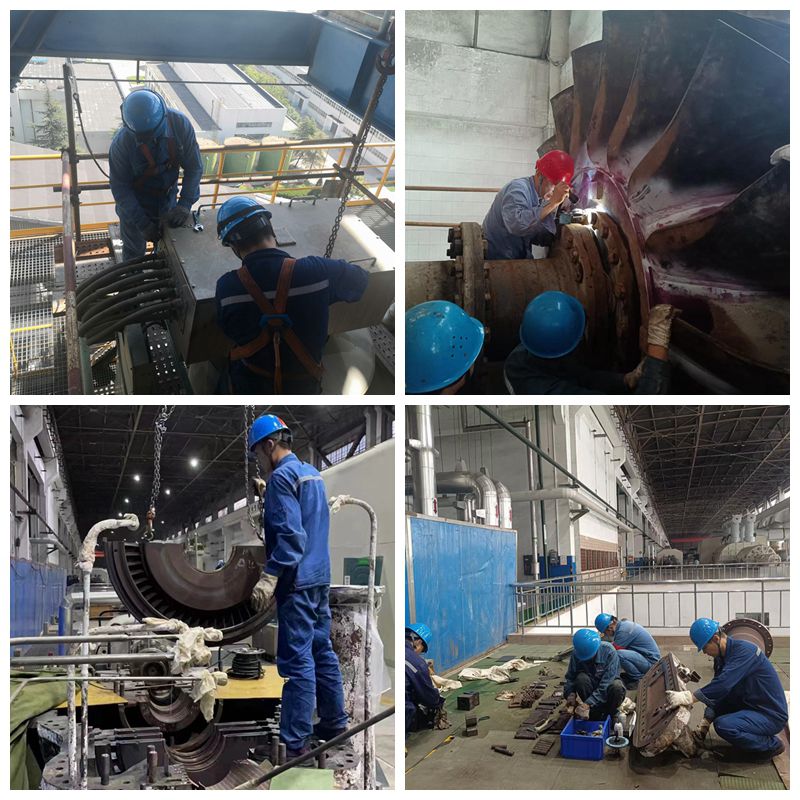 渭河發(fā)電#3機(jī)組C級(jí)檢修現(xiàn)場(chǎng)一片熱火朝天的景象,檢修人員主動(dòng)放棄中秋假期參與到C修當(dāng)中。汽機(jī)房各種交叉作業(yè)同時(shí)進(jìn)行,大錘的叮當(dāng)聲、行車(chē)起吊的哨子聲、銅棒的敲擊聲此起彼伏。乙小機(jī)大修的清掃、測(cè)量工作有序展開(kāi),檢修人員對(duì)小機(jī)轉(zhuǎn)子和葉輪進(jìn)行清掃,細(xì)心地粘貼白色膠布用來(lái)測(cè)量汽封間隙,確保檢修質(zhì)量精益求精。