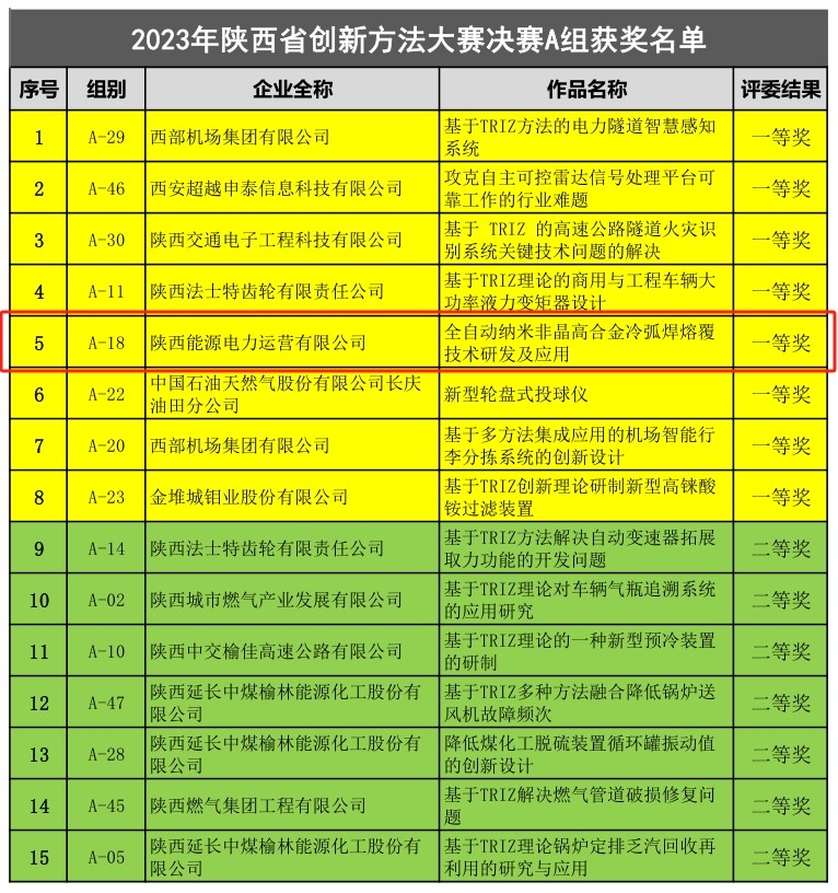 11月5日,公司“全自動納米非晶高合金冷弧焊熔敷技術(shù)研發(fā)及應(yīng)用”創(chuàng)新成果在2023“秦創(chuàng)原·涇河新城杯”陜西省創(chuàng)新方法大賽中斬獲一等獎。這是繼2022年獲得陜西省創(chuàng)新方法大賽一等獎后,公司再次斬獲此項(xiàng)殊榮。