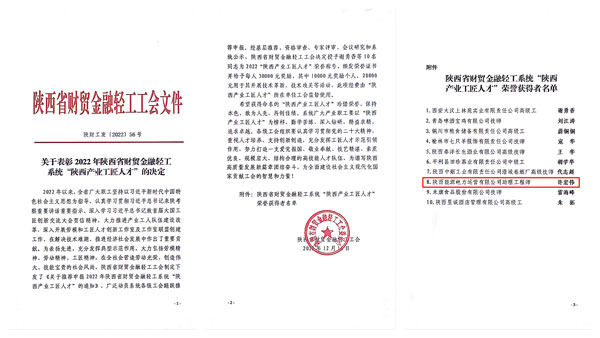 “陜西產(chǎn)業(yè)工匠人才”評選旨在弘揚勞模精神、勞動精神、工匠精神,表彰優(yōu)秀工匠人才。2022年,共有10名同志被陜西省財貿(mào)金融輕工工會授予“陜西產(chǎn)業(yè)工匠人才”稱號,頒發(fā)榮譽(yù)證書并給予每人30000元獎勵,其中10000元獎勵個人,20000元用于其開展技術(shù)革新、技術(shù)攻關(guān)等活動。