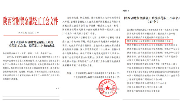 日前,陜西省財(cái)貿(mào)金融輕工工會印發(fā)《關(guān)于表彰模范職工之家、模范職工小家的決定》,公司渭河項(xiàng)目部分工會榮獲“模范職工小家”稱號。
