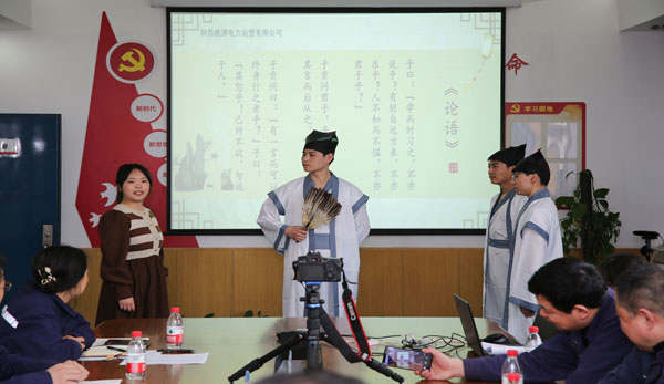 活動(dòng)現(xiàn)場(chǎng),與會(huì)人員回顧了自己工作以來(lái)的歷程,做了一次自我反省。在項(xiàng)目部自制MV引領(lǐng)下,參會(huì)人員齊唱歌曲《公民道德歌》,觀看道德模范事跡視頻,并通過(guò)青年員工自導(dǎo)自演的古今穿越情景劇演繹《論語(yǔ)》經(jīng)典、講述“陜投好人”邢進(jìn)故事等環(huán)節(jié),引導(dǎo)干部職工提高思想道德、職業(yè)道德和家庭美德。