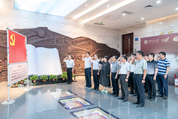 “我志愿加入中國共產(chǎn)黨,擁護黨的綱領(lǐng),遵守黨的章程……”鏗鏘有力的宣誓聲響起時,每個人的內(nèi)心都無比激動。在西遷博物館,全體黨員舉起右手面向黨旗莊嚴(yán)宣誓,重溫入黨誓詞,牢記共產(chǎn)黨員的政治責(zé)任和使命擔(dān)當(dāng)。