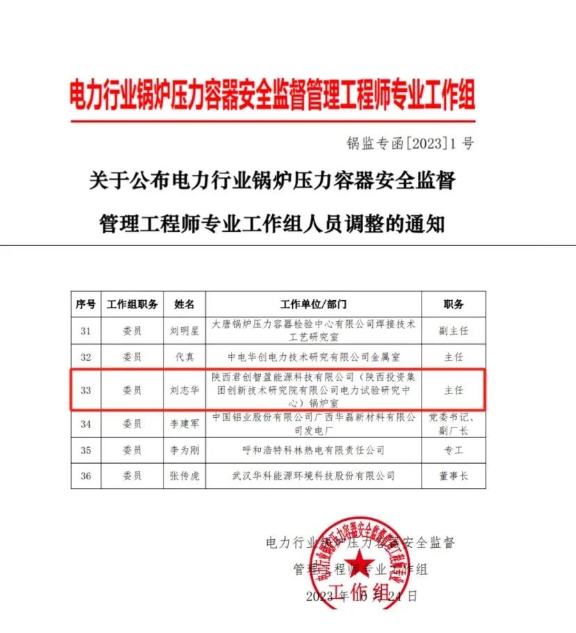 近日,君創(chuàng)科技鍋爐專業(yè)室劉志華入選中電聯(lián)電力行業(yè)鍋爐壓力容器安全監(jiān)督管理工程師專業(yè)工作組。