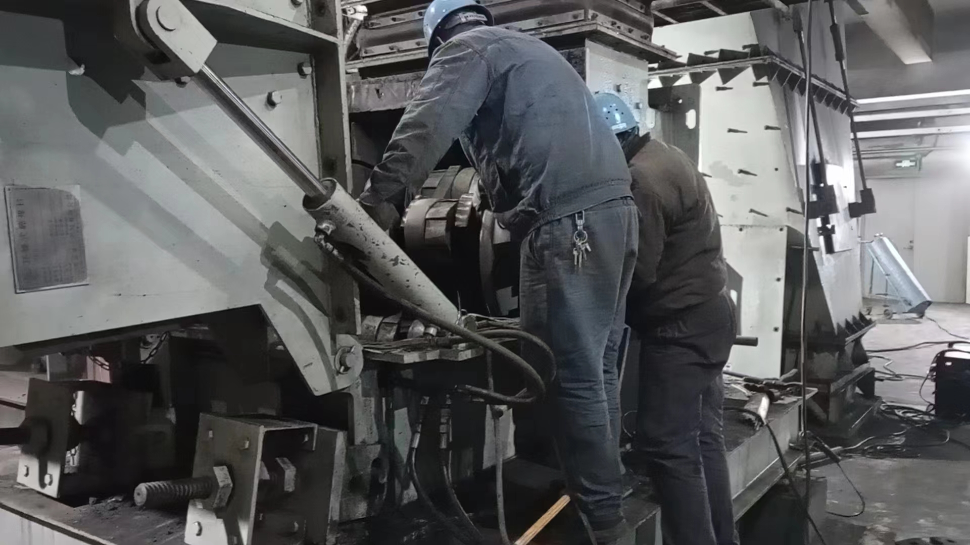 輸煤設備甲粗碎機突發(fā)故障,輸煤系統(tǒng)甲側(cè)處于“癱瘓”狀態(tài),隨時有斷煤風險。麟北項目部火線啟動應急預案,成立搶修小組,對粗碎機展開全面檢查。搶修人員緊密協(xié)作,開蓋、抽拉、吊運、安裝、回吊……對設備拆舊換新,補焊加固。經(jīng)過一夜奮戰(zhàn),設備于當日中午12時試轉(zhuǎn)成功,恢復正常運行。目前,麟北發(fā)電兩臺機組安全穩(wěn)定運行,將陣陣暖流跨省送到甘肅靈臺縣。