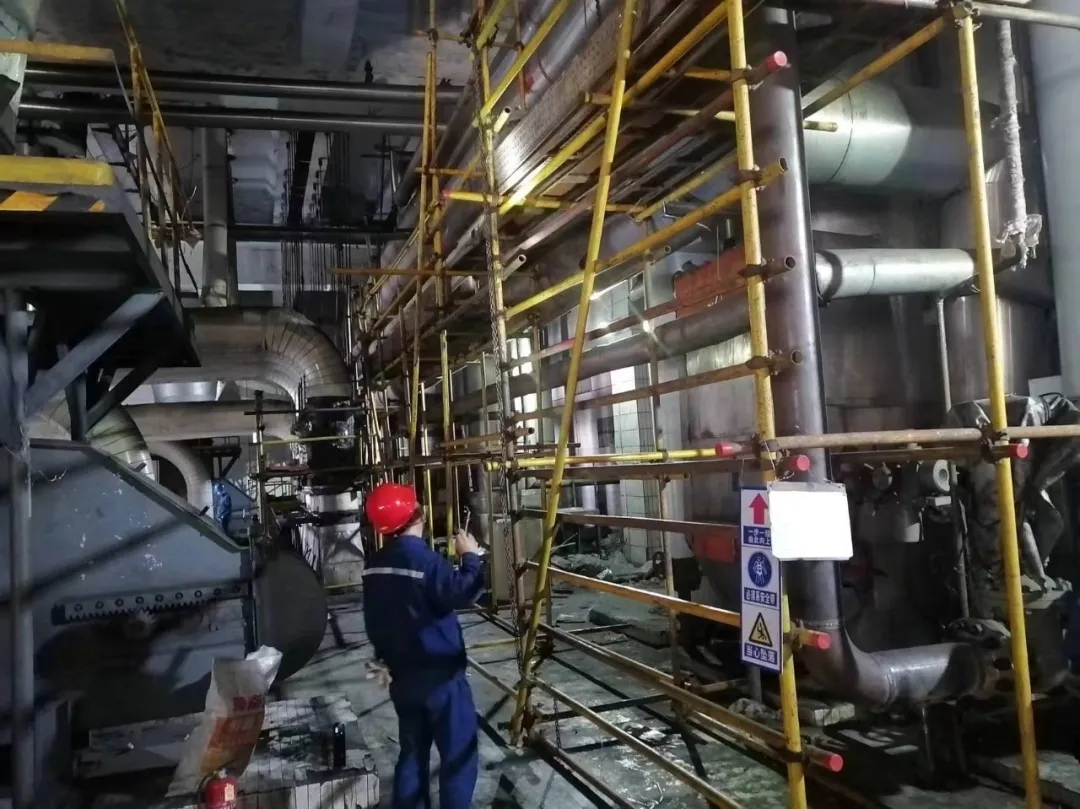 “退役軍人突擊隊”成員王書龍負責(zé)本次等檢所有腳手架搭設(shè)的安全監(jiān)督檢查。從人員崗前培訓(xùn)到作業(yè)“四措兩案”的編制,從有限空間內(nèi)部作業(yè)前的有害氣體檢測、人員登記到腳手架的規(guī)范搭設(shè),從橫桿端部的防撞帽、立桿下部的墊板到登高跨距標(biāo)準要求、安全帶的一步一跨,他事無巨細認真檢查。現(xiàn)場的腳手架作業(yè)點他幾乎每天都要走一遍,從不放過任何一個細節(jié)。