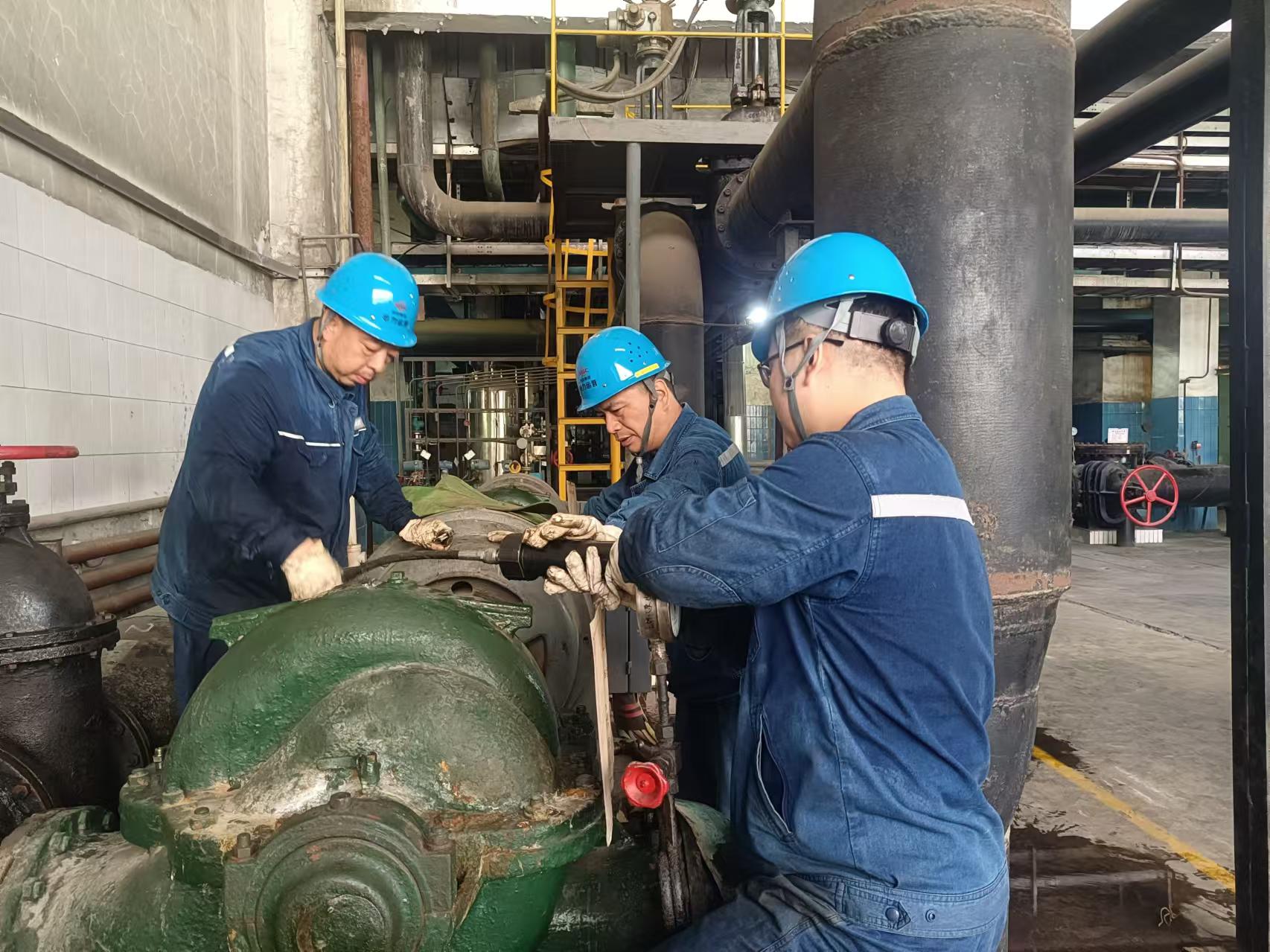 在供熱首站,因#4供熱水泵入口門無(wú)法拆除進(jìn)行解體檢查,只能在管道上開“天窗”,工作人員再鉆進(jìn)去開展工作。此工作屬有限空間作業(yè),審批、通風(fēng)、氣體檢測(cè)、專人監(jiān)護(hù)一項(xiàng)都不能少,確保安全措施落實(shí)到位后,大家方才開始作業(yè)。潮濕的管道、狹窄的位置、悶熱的環(huán)境,操作十分困難,檢修人員只能佝僂著身子用塞尺一點(diǎn)一點(diǎn)檢查,最終經(jīng)加固處理門板銷子和整定試驗(yàn)后,閥門嚴(yán)密性得到顯著提升,徹底解決了機(jī)組運(yùn)行需要消缺時(shí)系統(tǒng)無(wú)法解列的問題,為冬季供熱系統(tǒng)安全平穩(wěn)運(yùn)行打下堅(jiān)實(shí)基礎(chǔ)。