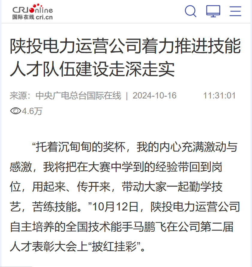“托著沉甸甸的獎(jiǎng)杯,我的內(nèi)心充滿(mǎn)激動(dòng)與感激,我將把在大賽中學(xué)到的經(jīng)驗(yàn)帶回到崗位,用起來(lái)、傳開(kāi)來(lái),帶動(dòng)大家一起勤學(xué)技藝,苦練技能。”10月12日,陜投電力運(yùn)營(yíng)自主培養(yǎng)的全國(guó)技術(shù)能手馬鵬飛在公司第二屆人才表彰大會(huì)上“披紅掛彩”。