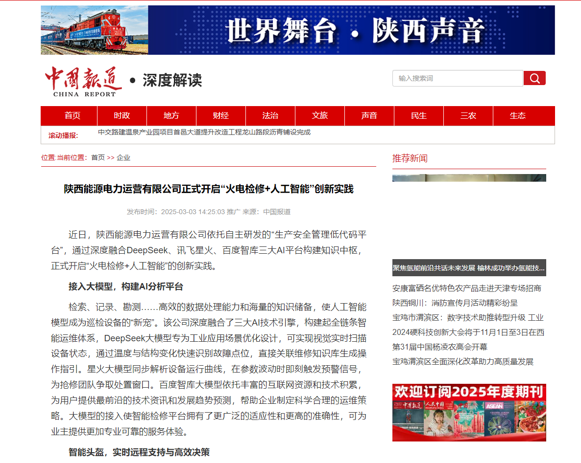 日前,陜西能源電力運(yùn)營(yíng)有限公司依托自主研發(fā)的“生產(chǎn)安全管理低代碼平臺(tái)”,通過(guò)深度融合DeepSeek、訊飛星火、百度智庫(kù)三大AI平臺(tái)構(gòu)建知識(shí)中樞,正式開啟“火電檢修+人工智能”的創(chuàng)新實(shí)踐。