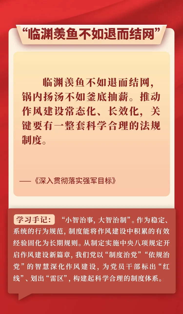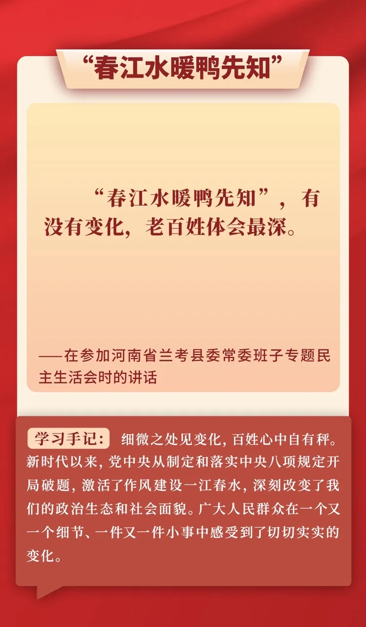 “問渠那得清如許?為有源頭活水來。”關于作風建設,習近平總書記常引用各種古語典故,有的從警示層面講危害,有的從倡導層面談踐行,旁征博引、畫龍點睛,把古人智慧化用于作風建設的當代實踐,給人以思想啟迪、靈魂洗禮。