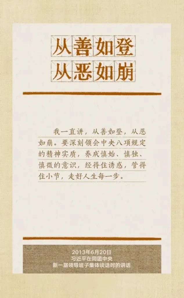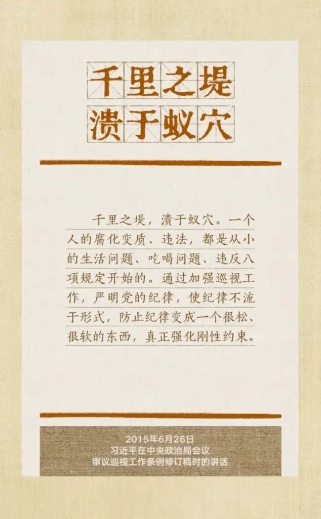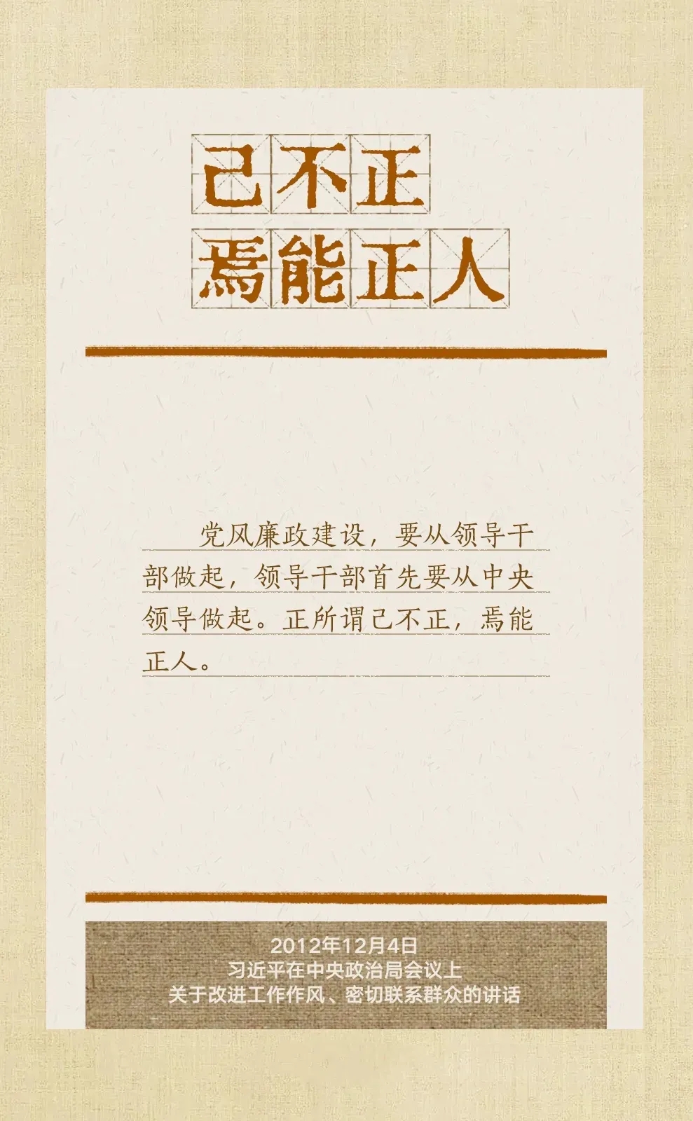 黨的十八大以來,習(xí)近平總書記多次就抓好黨的作風(fēng)建設(shè)、貫徹落實(shí)中央八項(xiàng)規(guī)定精神發(fā)表重要講話,作出重要批示,提出明確要求。“沒有規(guī)矩,不成方圓”、“己不正,焉能正人”、“盡小者大,慎微者著”······總書記引用的這些古語(yǔ)耐人尋味。