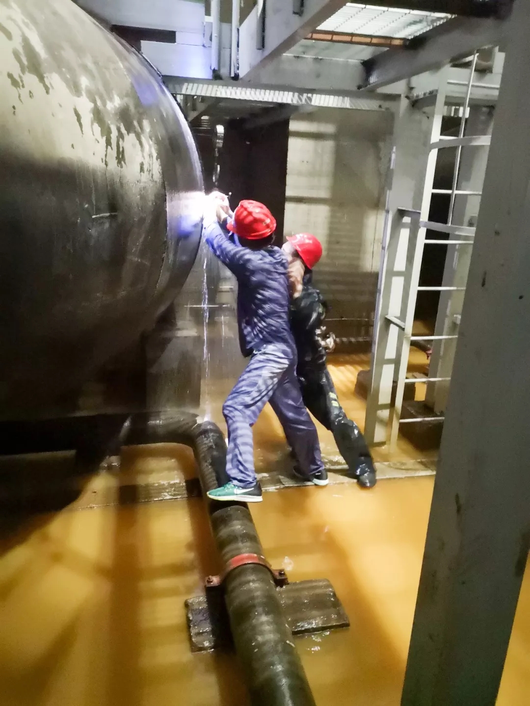 當(dāng)晚19點(diǎn)20分,#1機(jī)凝汽器循環(huán)水A側(cè)進(jìn)水管熱工溫度計(jì)插管突然斷裂,大量循環(huán)水噴涌而出,危及到#1機(jī)組安全運(yùn)行,情況十分緊急。張兵再次趕赴現(xiàn)場(chǎng),查明原因后立即組織人員增援,指揮加裝潛水泵,防止事態(tài)擴(kuò)大。