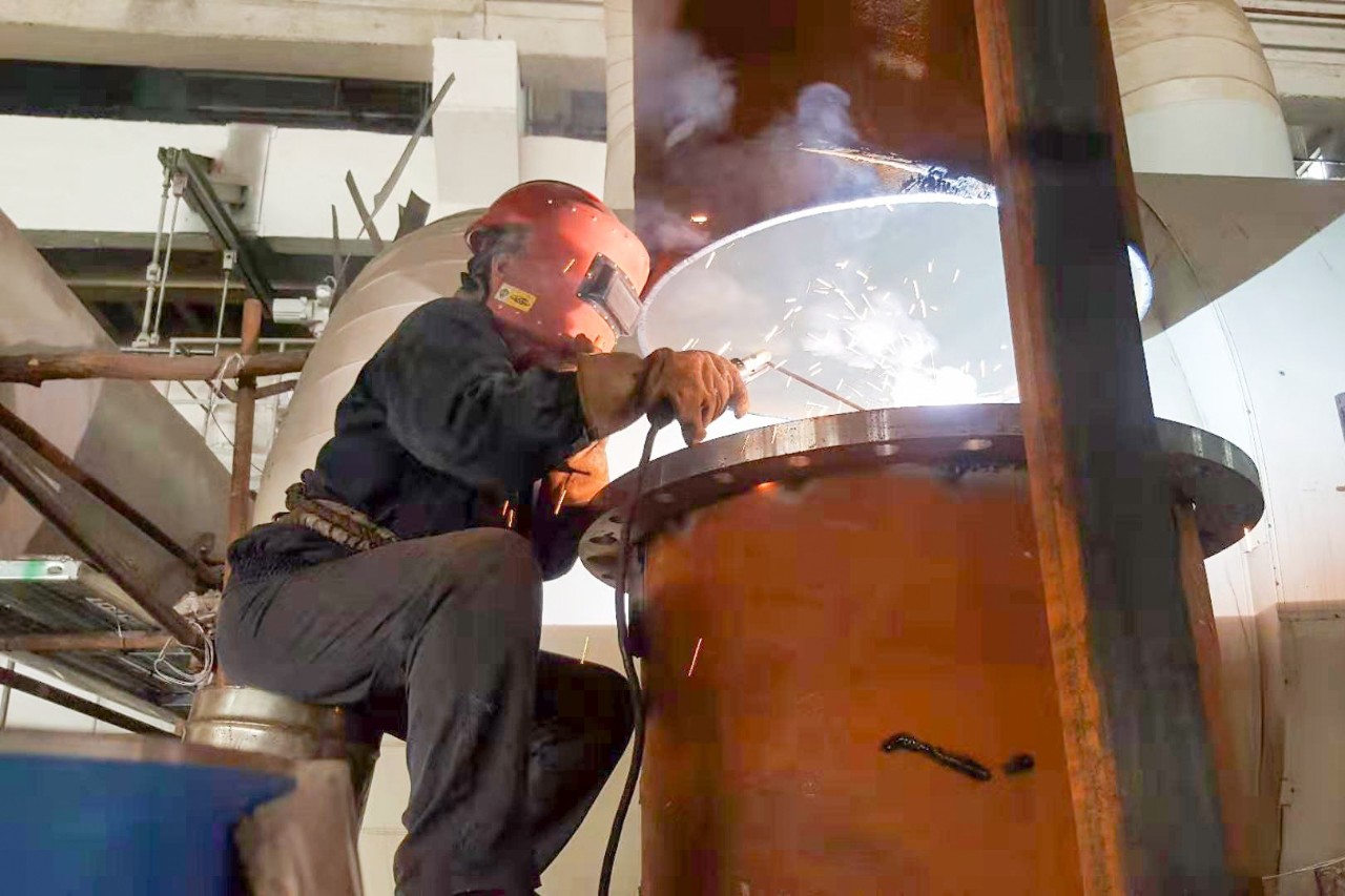 尖峰加熱器水側(cè)加裝出、入口門是此次大修的重點(diǎn)工作,需要在外徑920MM的管道上進(jìn)行斷口、制口,再將超過半噸重的閥門安裝到位,多工種交叉作業(yè),對安全和技術(shù)要求極高,工作難度極大。為此,項(xiàng)目部成立專門小組負(fù)責(zé)現(xiàn)場技術(shù)、安全工作,以便隨時掌握施工進(jìn)展,及時處理各種應(yīng)急情況。目前,此項(xiàng)工作正在緊張有序進(jìn)行當(dāng)中。