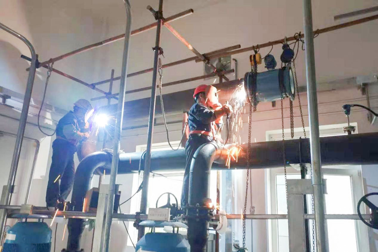 隨著供熱季的臨近,麟電供熱管網(wǎng)的沖洗工作迫在眉睫,但由于疏干水提升泵出口流量計出現(xiàn)故障,嚴重影響了工作的進行。機務(wù)汽化水班接到任務(wù)后,立即協(xié)同綜合班合理安排工序,協(xié)調(diào)各工種緊密配合,全體人員克服工期緊、任務(wù)重等困難,經(jīng)過連續(xù)20個小時的晝夜奮戰(zhàn),保質(zhì)保量完成了此次搶修工作。