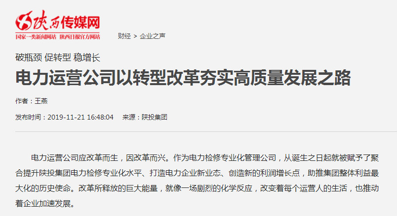 電力運營公司應(yīng)改革而生,因改革而興。作為電力檢修專業(yè)化管理公司,從誕生之日起就被賦予了聚合提升陜投集團電力檢修專業(yè)化水平、打造電力企業(yè)新業(yè)態(tài)、創(chuàng)造新的利潤增長點,助推集團整體利益最大化的歷史使命。改革所釋放的巨大能量,就像一場劇烈的化學(xué)反應(yīng),改變著每個運營人的生活,也推動著企業(yè)加速發(fā)展。