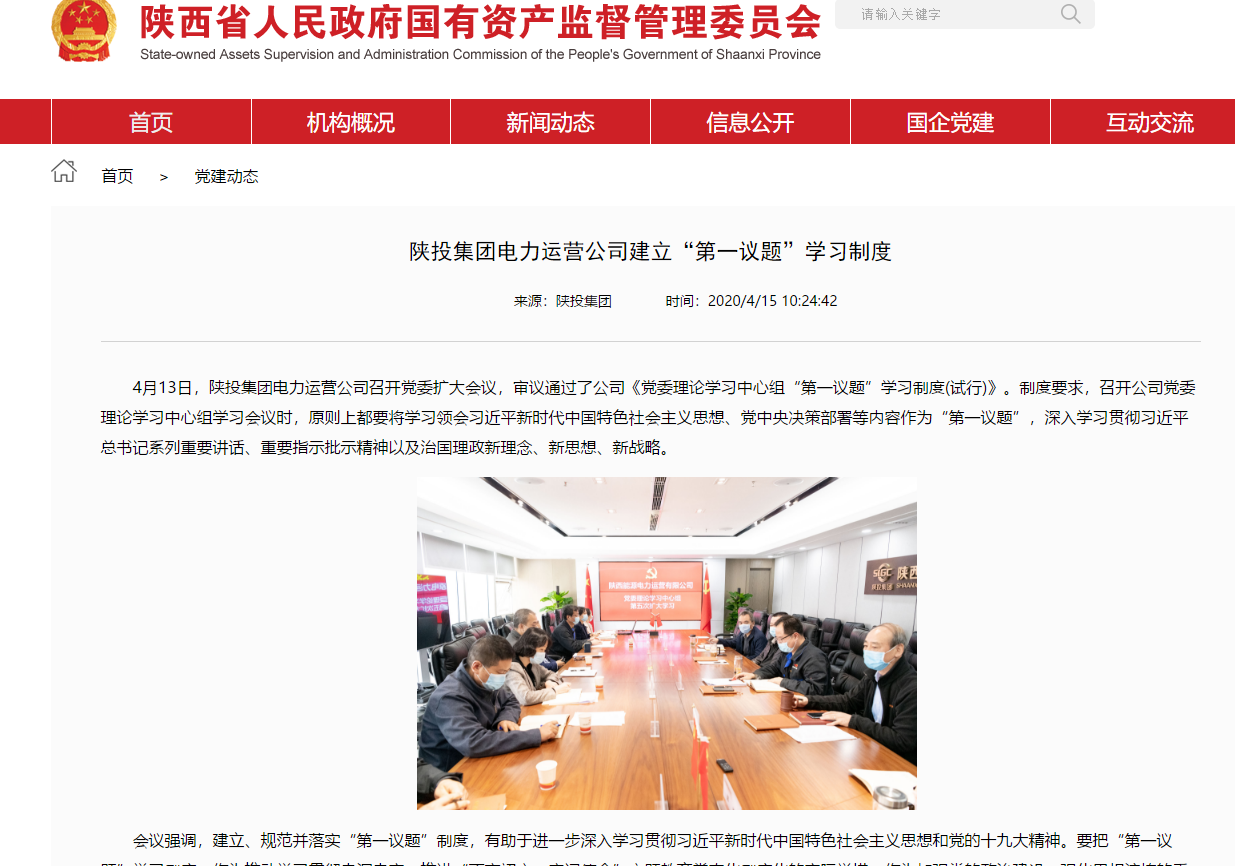 為落實集團黨委2020年宣傳思想文化工作要點,豐富黨委理論中心組學習內容形式,按照集團巡視整改要求,4月13日,電力運營公司召開黨委擴大會議,審議通過了公司《黨委理論學習中心組“第一議題”學習制度(試行)》。制度要求,召開公司黨委理論學習中心組學習會議時,原則上都要將學習領會習近平新時代中國特色社會主義思想、黨中央決策部署等內容作為“第一議題”,深入學習貫徹習近平總書記系列重要講話、重要指示批示精神以及治國理政新理念、新思想、新戰(zhàn)略。