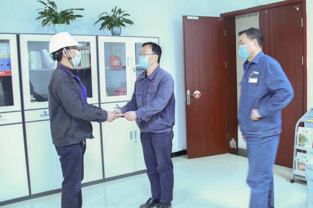 4月21日,商洛項目部領(lǐng)導(dǎo)前往商洛發(fā)電設(shè)備部,親手將2900元愛心捐款交到田超同志手中。