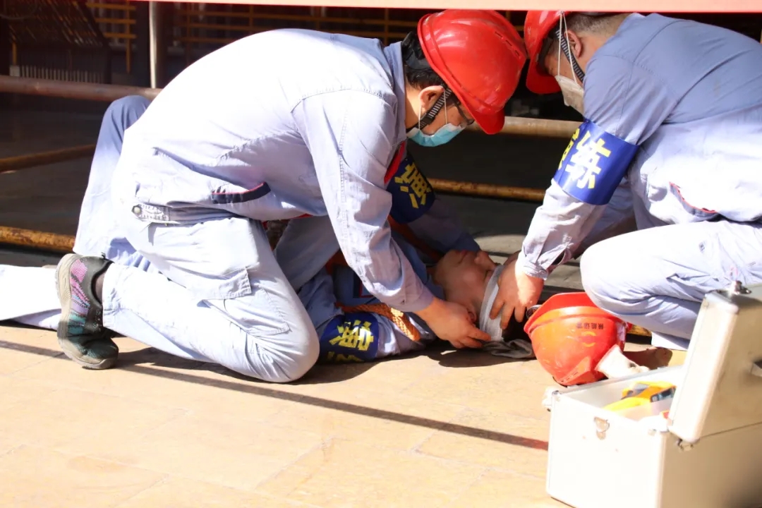 演練過程中,職工發(fā)生觸電及高處墜落事故,項(xiàng)目部立即啟動(dòng)應(yīng)急預(yù)案,救援人員第一時(shí)間趕至現(xiàn)場(chǎng),對(duì)受傷人員進(jìn)行緊急處理,并及時(shí)聯(lián)系專業(yè)醫(yī)護(hù)人員趕赴現(xiàn)場(chǎng)進(jìn)行救援。