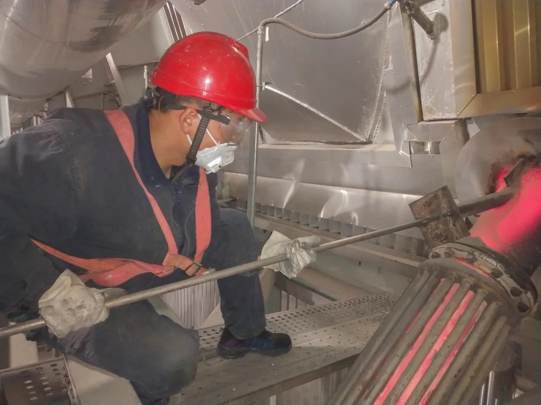 一天,正吃中午飯的崔登鋒突然接到緊急消缺通知,他撂下飯盒,就奔向現(xiàn)場(chǎng)。工作現(xiàn)場(chǎng)落渣管的溫度高達(dá)400℃,煤粉隨著陣陣熱浪撲面而來(lái),崔登鋒完全顧不上這些,眼睛一直盯著缺陷,手中緊握的鋼釬一刻也不停下來(lái)。就這樣持續(xù)奮戰(zhàn)了五個(gè)小時(shí)后,直到險(xiǎn)情排除,他的臉上才露出笑容。