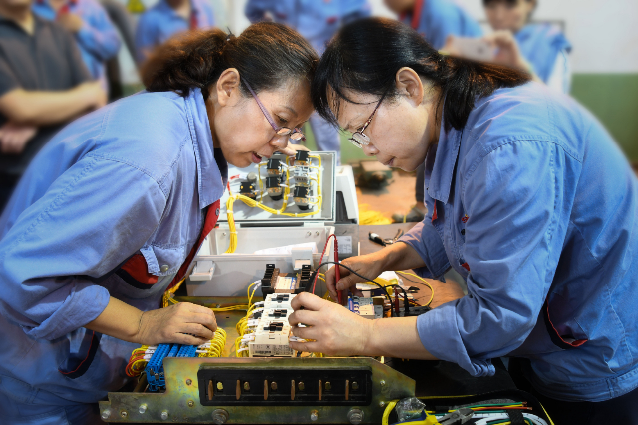 在電氣二次配線賽場(chǎng)上,選手們參照?qǐng)D紙剪線、剝線、接線,量線,每一個(gè)眼神都專業(yè)專注,每一個(gè)環(huán)節(jié)都力求精益求精。