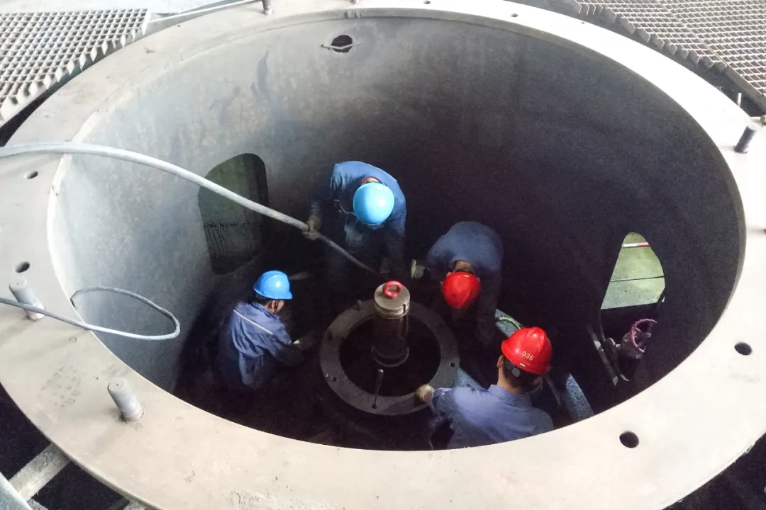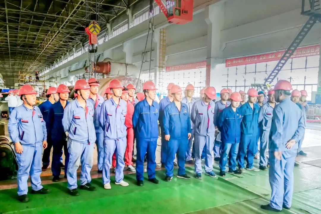 14:10,經(jīng)過全體人員的連續(xù)作業(yè),發(fā)電機轉子順利抽出,成功吊至檢修區(qū)域,為下一步的解體檢修贏得了時間。