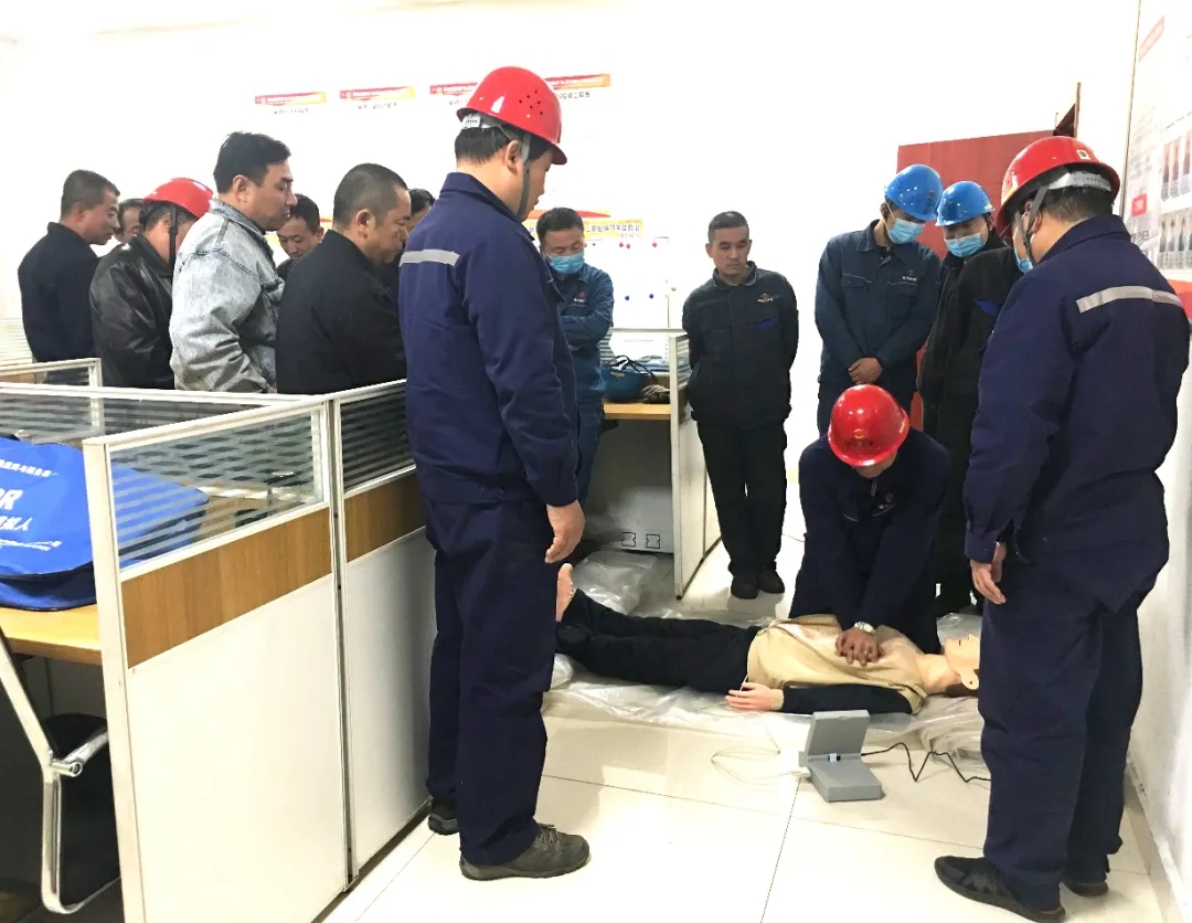 安全專工帶著心肺復(fù)蘇模擬人深入到各班組,講解生產(chǎn)現(xiàn)場一般急救常識,著重介紹了“心肺復(fù)蘇法”在現(xiàn)場急救中的應(yīng)用,并按照“心肺復(fù)蘇法”實操標準步驟講解示范。通過逐人實操練習,不斷總結(jié)經(jīng)驗,學習急救知識,最終達到100%完成標準“心肺復(fù)蘇法”全程操作。
